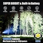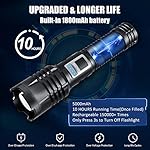 🏅 【 SUPER BRIGHT RECHARGEABLE FLASHLIGHT 】Zavuxo rechargeable flashlights is equipped with an upgraded XHP99 chip, which can output up to 100000 lumens. The lighting distance of super bright flashlights can reach 1000 meters, which is 20 times brighter than a regular LED flashlight! The high lumens flashlights provides impressive ultra bright lighting, which can easily illuminate the entire room and no longer make you feel dark.