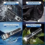 🏅 【IPX4 WATERPROOF FLASHLIGHT 】Zavuxo rechargeable tactical camping flashlight adopts a thick rubber ring, which can achieve an IPX4 waterproof level and is not easily invaded by dust. Spraying water at any angle will not have an effect on its use. There is not any problem the usage of a super bright waterproof flashlight in extreme weather such as heavy rain and snowstorms. It is very suitable for outdoor night walks, running, cycling, camping, mountaineering, diving, directional search, and general household use.