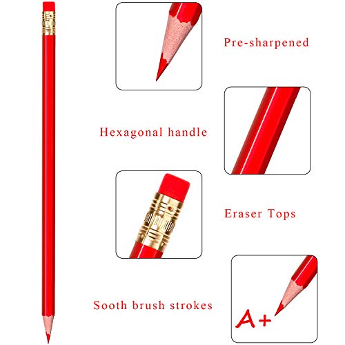 Practical gift: these checking pencils with erasers are practical gifts for teachers, artists, accountants or engineers.Please note that the actual color of the pen and refill is red, and the green pencil imprinted on the package is only for decoration.
