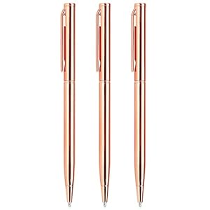 LONGKEY 3 Pack Slim Ballpoint Pens Black ink Medium Point 1.0 mm Writting Pen, Great Gift for Wedding Business Office Students Teachers Christmas (Rose Gold)