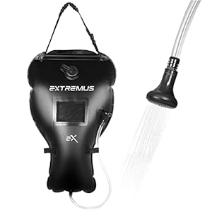 Extremus Camping Shower Bag, 6.6 Gallons/25L Camp Shower Bag, Durable, Leak-Proof Design with Thermometer, Removable Hose, and On-Off Switchable Shower Head, Portable Solar Shower for Camping