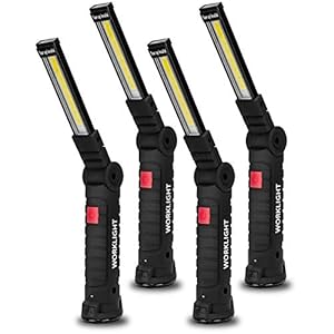 5 Modes & Rechargeable: This rechargeable work light Built-in rechargeable battery, rechargeable by USB port ( included usb cable), has 5 Lighting modes: High Brightness / Medium Brightness / Front Light / Red Warning / Strobe Red, ideal for outdoor, car repair or security lamp.